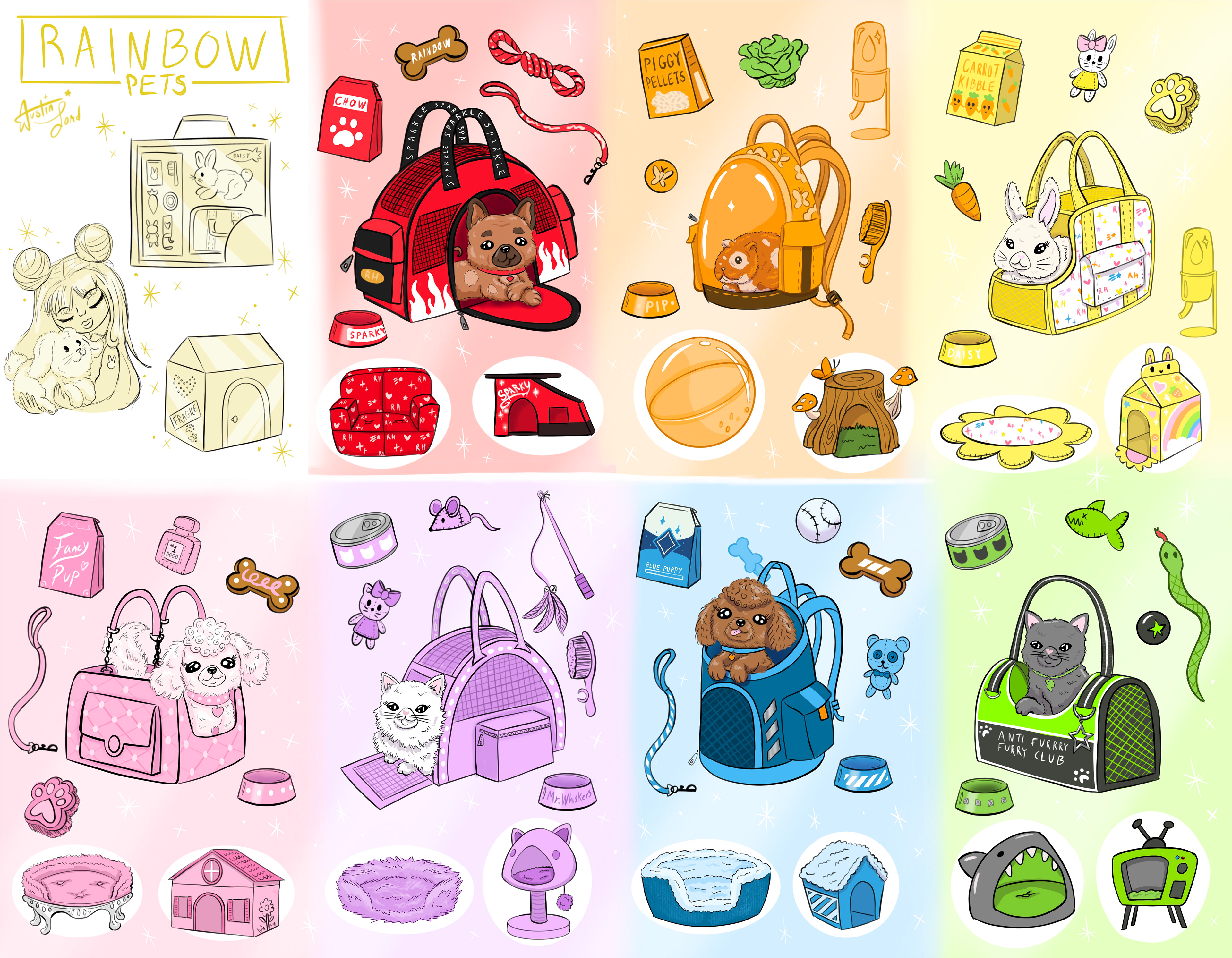 Here's my take on some adorable pets for the main characters of Rainbow High. Along with some other Rainbow High artwork by me.